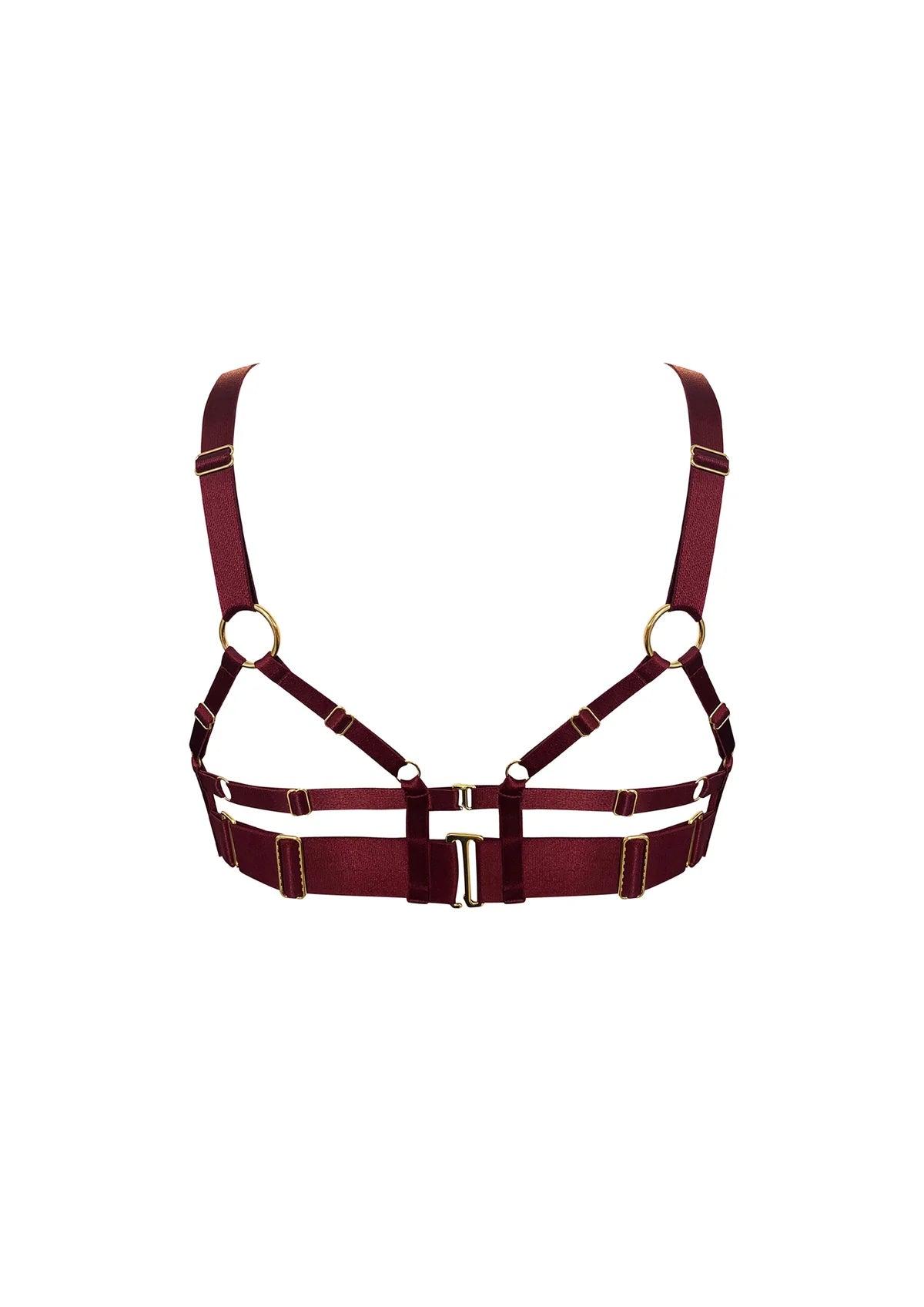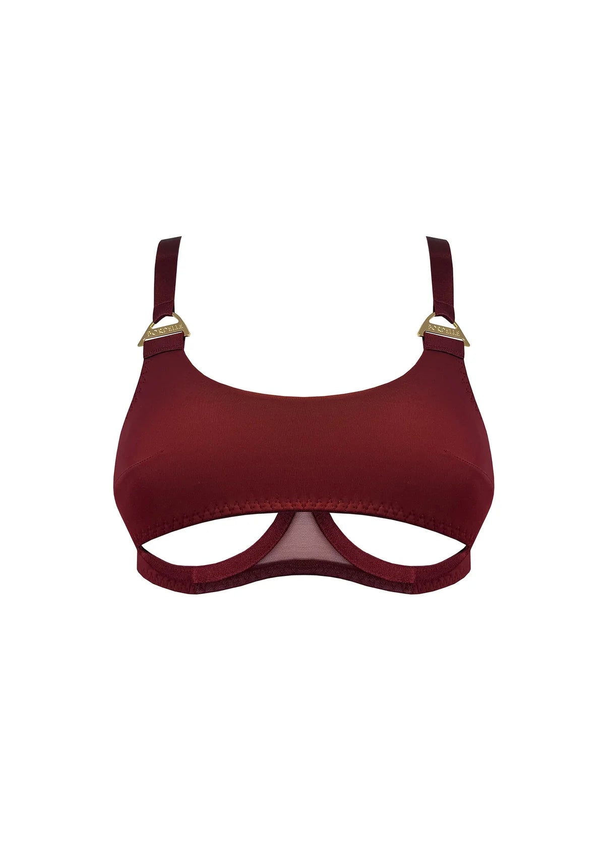 Soft jersey wire bra with underbust peep! The scoop neckline connects to the shoulder strap via Bordelle's 24K gold plated oversized component. The sensual back has Bordelle's signature adjustable wide elastic straps. Perfect for styling with outerwear.